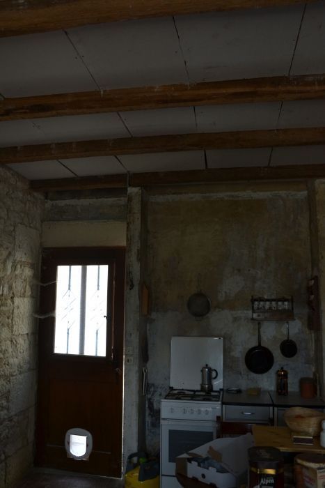 - l'électricité est à refaire en partie (environ 1 semaine), nous avons enlevé le faux plafond de la cuisine et avons découvert les poutres qui sont en bonne état dans l'ensemble et que l'électricité est en grande partie dans les normes électriques (qui sont les mêmes que pour une habitation classique),