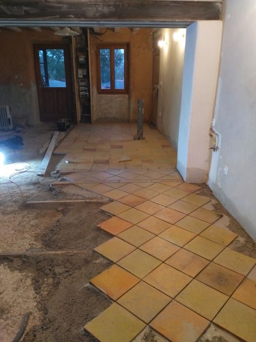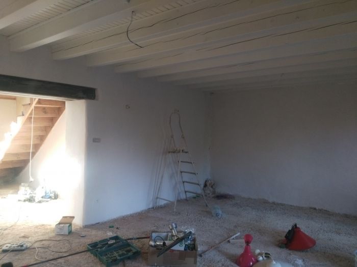 Je suis dans la maison depuis mai 2018, pour le moment ce qui a été fait c'est aménagement d'un espace de vie agréable le temps des travaux, démolition de la dalle ciment et des enduits ciments, ouverture intérieur et vers l'extérieur, toilettes sèches, débroussaillage du jardin, terrassement, plantation de fruitier...