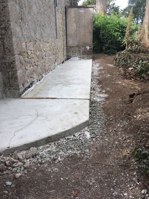 - création d'un hérisson ventilé et coulage de la dalle chaux sable.
