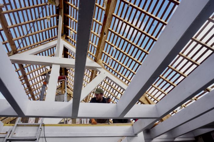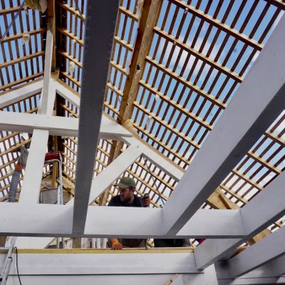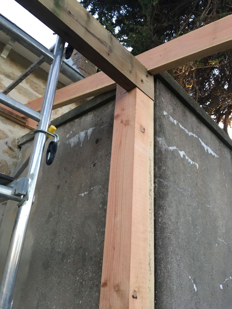 - renfort de la charpente afin de rehausser un peu le plafond et supporter la futur isolation,