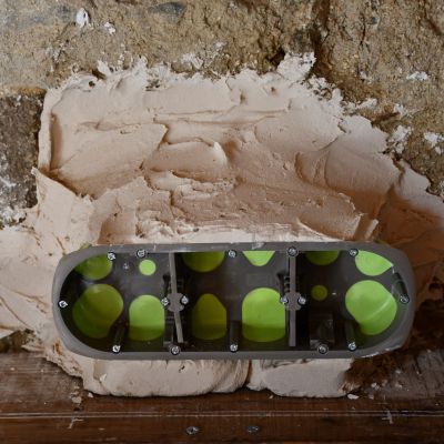 - enduits chaux chanvres aux endroits sensibles où la projection à la machine ne sera pas possible + chaux liège autour des fenêtres