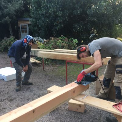 Pour celà nous nous sommes tous trois beaucoup documentés et Arthur a participé à de nombreuses formations sur l’écoconstruction en autoconstruction à l'Eco centre de Plemeur Bodou et avec l'association Tiez Breiz spécialisée en bâtiment ancien traditionnel.
