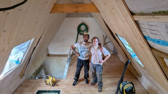 Nous n’avions à l’origine aucune compétence dans les travaux de rénovation mais à force de chantiers participatifs, de petites formations, d’heures de lectures et surtout d’heures passées sur le chantier, on parvient à nos fins, tranquillement.