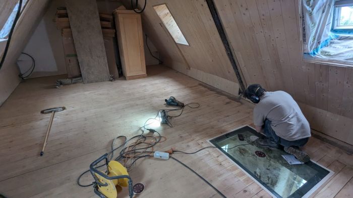 Ensuite, nous attaquerons les réseaux d'eau et d'électricité, l'installation de la salle de bains, de la cuisine et la création d'une pièce à l'étage.