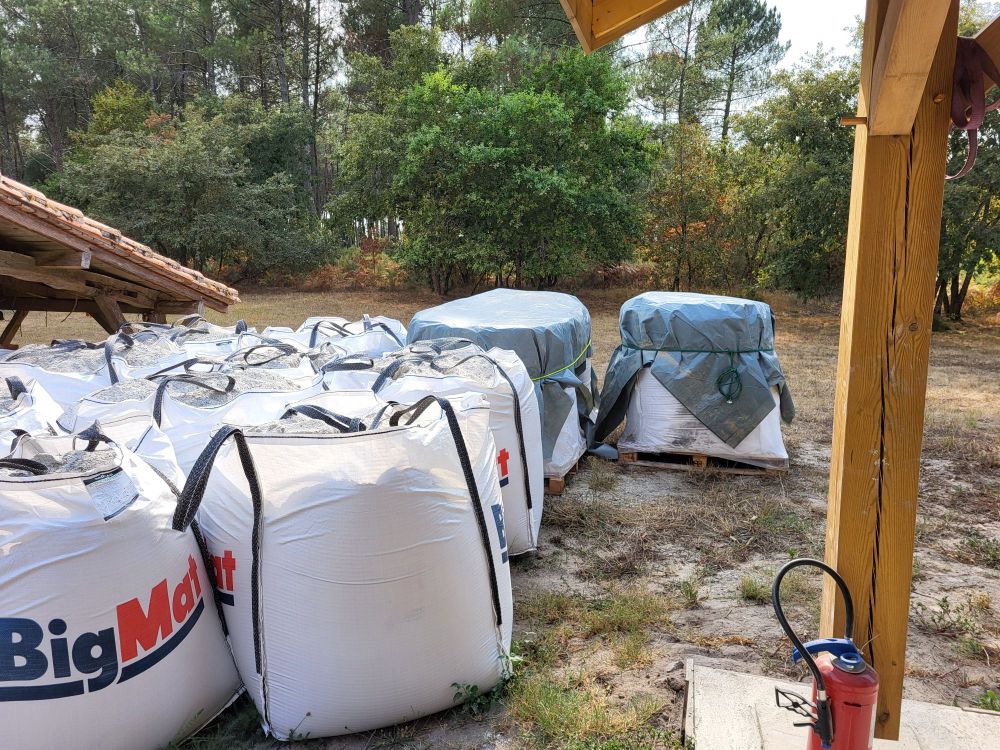 - Dallage intérieur en chaux-pouzzolane de Saint-Astier en Dordogne et dans le Massif Central avec hérisson (carrière landaise) et géotextile : à la toupie et à la bétonnière