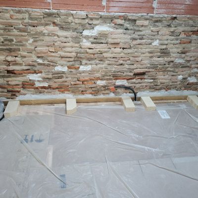 - Nous attendons des infos pour éventuellement nous faire encadrer pour la pose de la chape et des pierres naturelles qui vont dessus.
