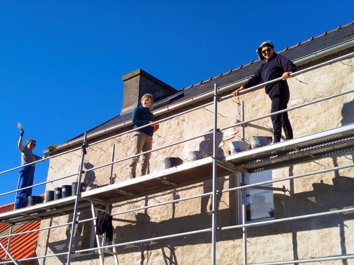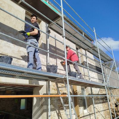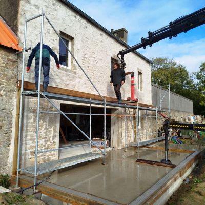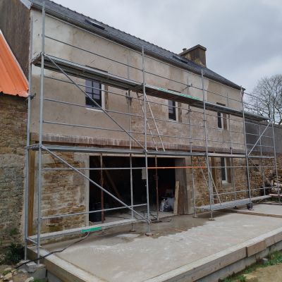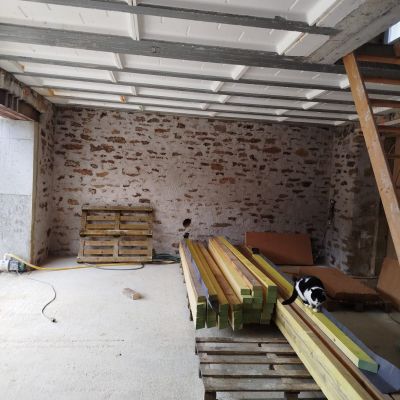 - Rénover la maison : enduit chaux (intérieur et extérieur), isolation, bardage, extension avec véranda, installation de menuiserie, cloisonnement, installation d'escalier, plancher, plomberie, électricité, etc.