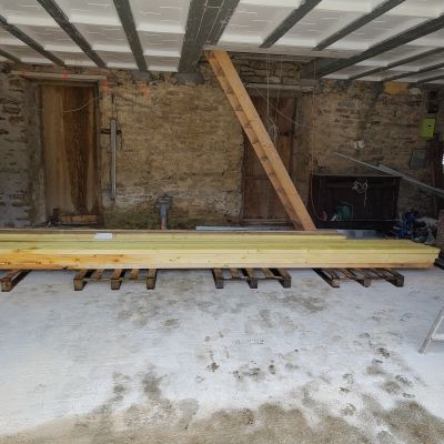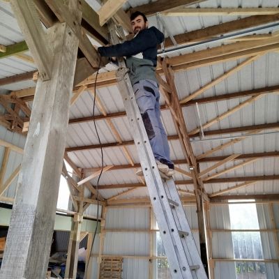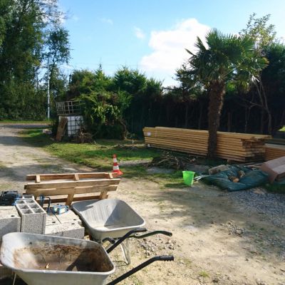 - Rénover le hangar pour en faire un atelier perso : faire une dalle béton, refaire la toiture, supprimer la partie abîmée, fermer le bardage, faire une porte.