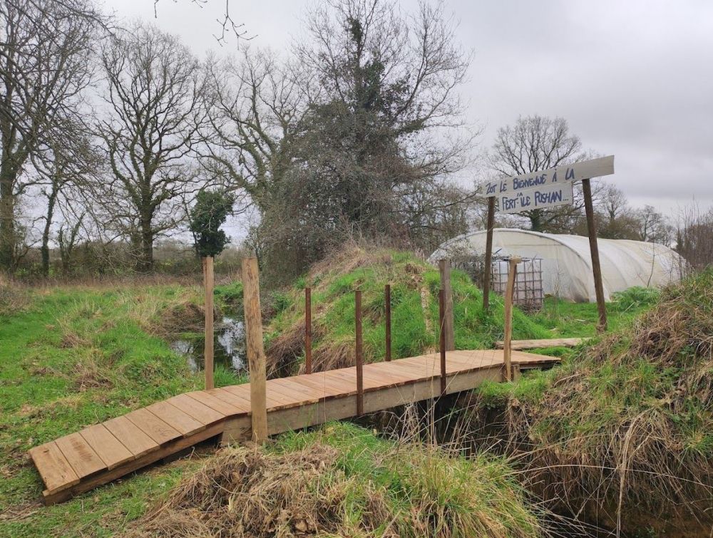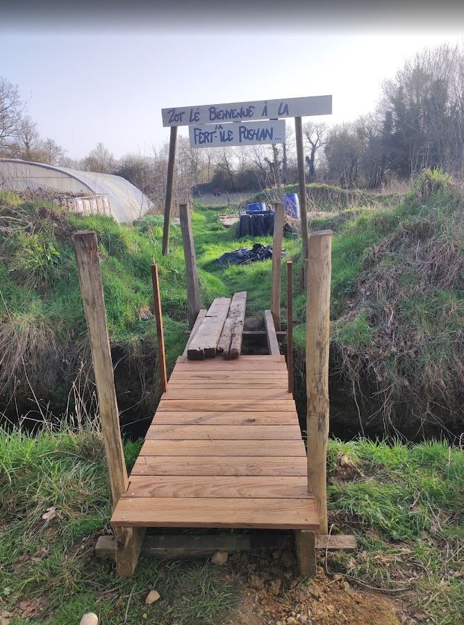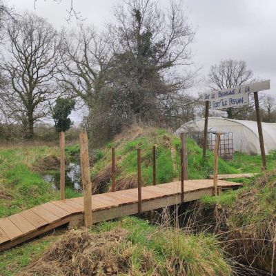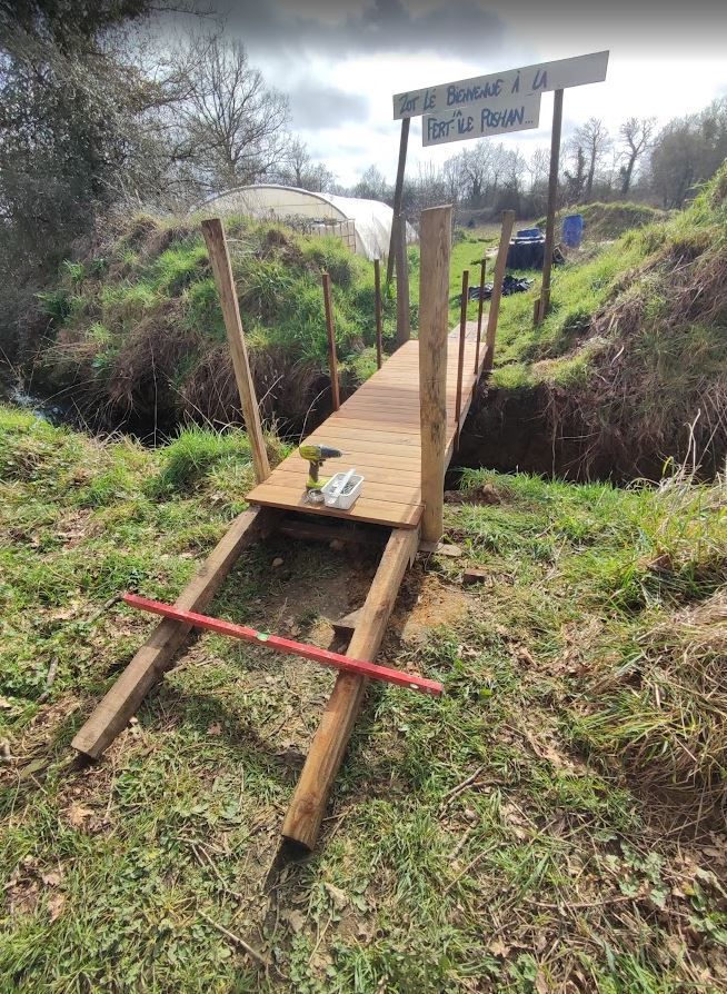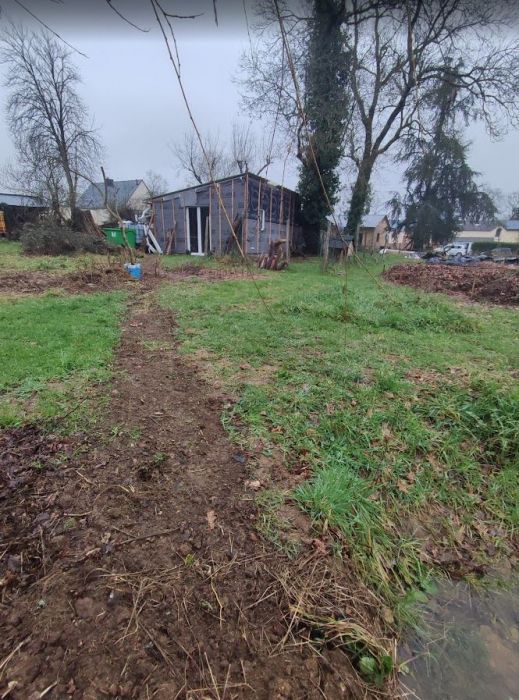 Un bel hectare de verdure dans un petit hameau d’une dizaine de maisons : on a eu un coup de cœur tous les deux pour ce terrain, ancienne ferme familiale. Il en reste quelques traces : un hangar sous lequel nous avons installé notre cuisine d’été, le poulailler de l’époque que nous avons réhabilité et une ancienne grange (bâtiment en parpaing avec toiture en tôle).