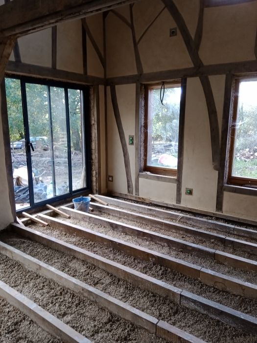 Charpente bois à l'ancienne, mur en terre paille, isolation de la partie ancienne en brique de chanvre, nous essayons de rénover et construire notre maison de la manière la plus écologique possible.