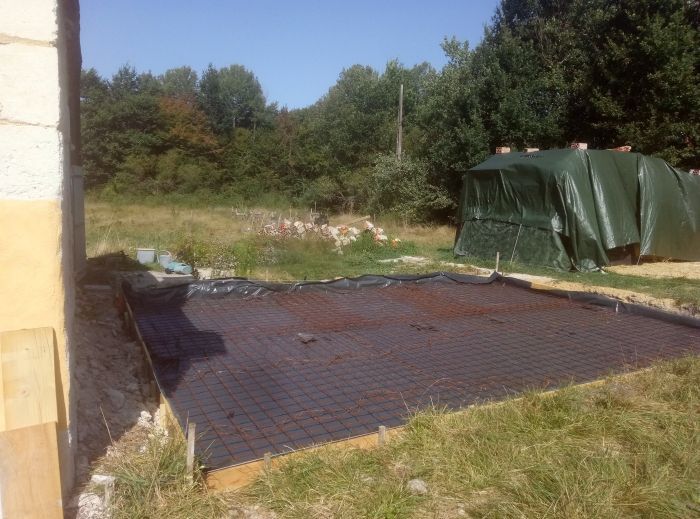 - Pose de gouttière et drainage des eaux de pluies autour de la maison vers une mare que j'ai creusée à la minipelle