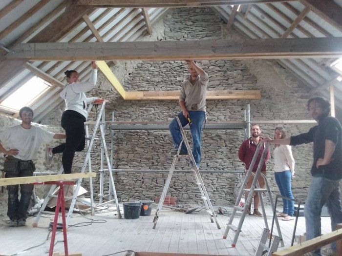 Avec Nicolas mon compagnon, électricien de métier nous avons tout casser pour ne garder que les murs, la charpente et le plancher du R+1.