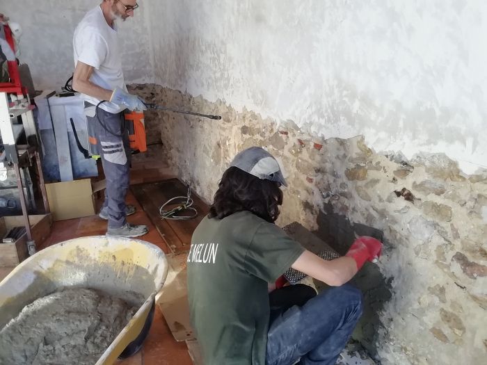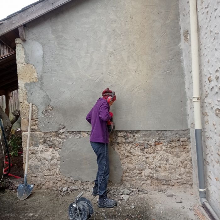 >> première phase: Isolation intérieure en chaux chanvre, enduits extérieurs à la chaux , modification des ouvertures, drainages extérieurs, création d'une réserve d'eau et début des enduits intérieurs (chaux, chanvre, bois)