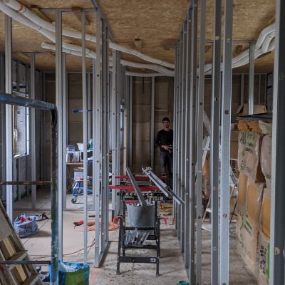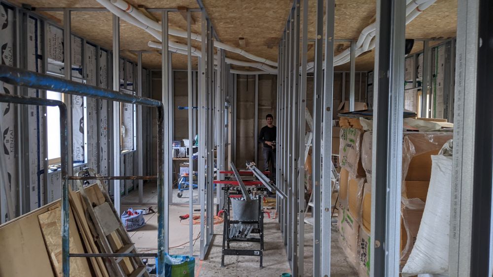 Et bien sûr, tout le second œuvre avec l'électricité, la plomberie, les cloisons, bardage, enduits… Bref, il y à tout à faire !