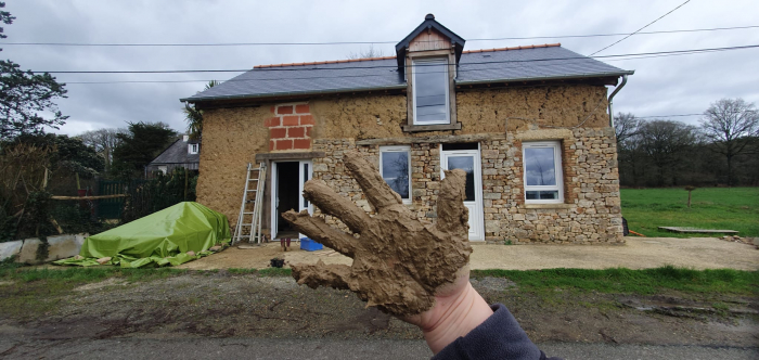 Je suis propriétaire d'une maison de 70m² datant de 1880, avec des murs en terre et pierre. Elle a été recouverte d'enduit ciment à l'extérieur et de placo à l'intérieur (au secours !). Le plan, c'est de tout enlever pour retrouver des murs au naturel, et refaire ensuite des enduits biosourcés (terre, paille, chanvre, chaux…) !