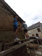 chargement de la terre, utilisation bétonnière pour malaxer, portage de brouette, application de la terre au mur, façonnage, nettoyage du matériel... et pourquoi pas aide à la cuisine selon vos envies