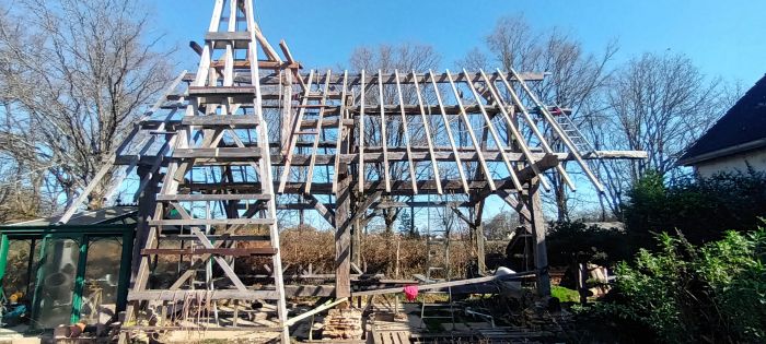Au programme pour les 12 mois à venir : isolation par l'extérieur (chanvre), couverture (bardeaux), solivage et planchers puis aménagement d'une structure en charpente traditionnelle magnifique fantastique.