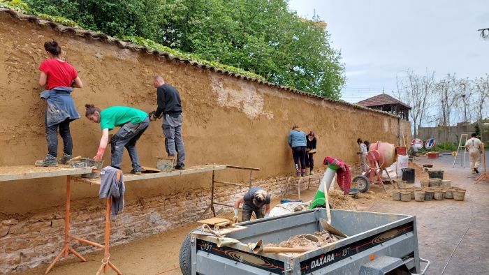 L’objectif de ce weekend sera de nous aider à « sauver » un mur en pisé bien abimé !
