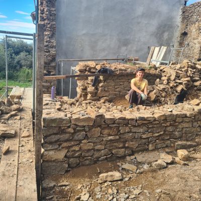 Flavien, j’ai 45 ans, je suis dans le milieu de la construction depuis 1995, tailleur de pierre de métier, formé à la charpente/menuiserie, ainsi qu’à la maçonnerie traditionnelle (dans le vrai sens du terme, chaux, terre, fibre végétale, etc.)