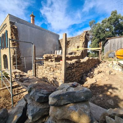 - reconstruction d’une voûte en anse de panier et d’un mur de refend