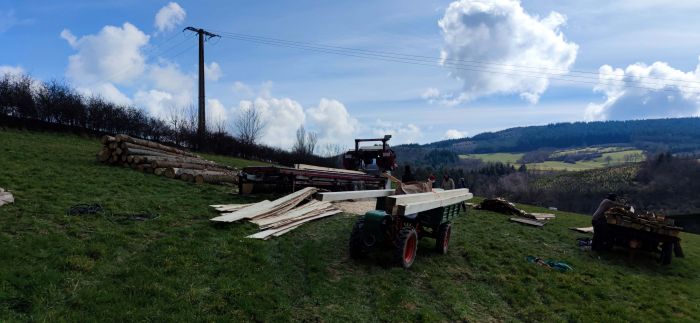 Nous faisons intervenir une scierie mobile le vendredi 28-02 et probablement le lundi 03-03 pour les valoriser en bois d'oeuvre (planches, chevrons, voliges, poutres).