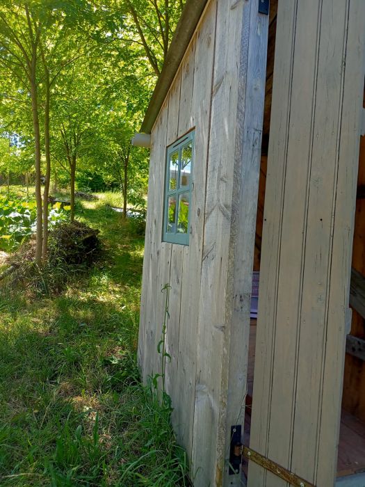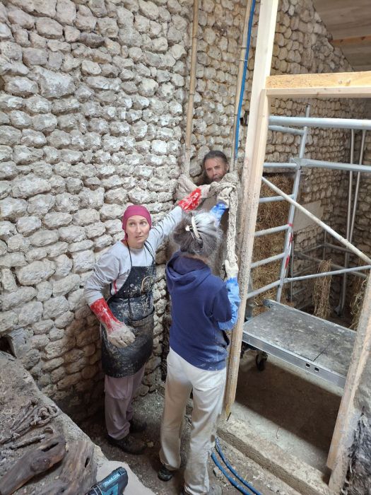 Pour cet été, nous sommes sur la construction d'une cloison en terre et chanvre dans la maison, et l'entretien du terrain (1.7ha).