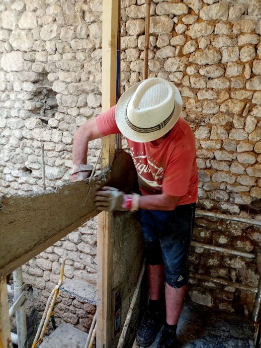 D'ici quelques mois, une autre tranche consistera à reconstruire une petite partie au bout de la maison (mur très abîmé qui c'est écroulé cet hiver) pour y faire un espace de rangement extérieur. On utilisera peut-être la paille avec ossature bois, mais rien n’est encore arrêté à ce sujet. Il y a aussi pas mal de maçonnerie, et la pose de menuiseries et aménagement d'une grande pièce dans l'ancien garage.