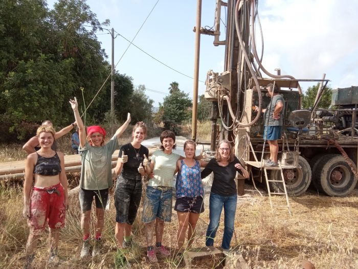 On a déjà commencé avec la rénovation et l'extension de la finca existante, un bâtiment de pierre, construit vers l'année 1900. On a levé les structures en bois et on a fini de rembourrer les toits avec de la paille, de la posidonie (herbe de Neptune, un type d'éco-isolation d'origine de plantes qui poussent dans la mer) et de le recouvrant avec des tuiles arabes, bénéficiant de l'aide de quelques amis. Récemment on a commencé à remplir les structures de bois des parois avec du terre allegée (un mélange léger de paille et d’argile), préparée sur place et comprimée, en lieu, dans le coffrage. Une fois ceux-ci seront finis, nous passerons à appliquer des enduits de terre/argile et de chaux et puis, à la pose des sols à la chaux et/ou à terre.