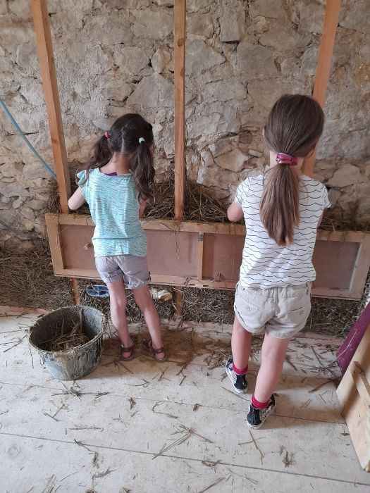 Notre espace d’habitation est une maison en pierre qui, depuis ses quelque 150 ans d'existence, a été modifiée dans ses usages et ses volumes. Nous ne sommes ni les premiers, ni les derniers à la faire évoluer au fil des temps. Une superbe grange fait partie du terrain, mais ça, ça sera pour un prochain chantier !