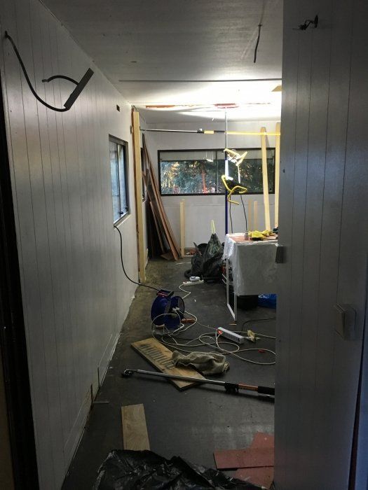 Nous avons besoin de renfort à partie de hier, afin de continuer la pose de l' aménagement intérieur, aussi, le mobilier provient du fruit de la récup'.