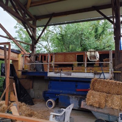 L’accès au chantier est possible par tout moyen individuel classique (à pied, à vélo, en voiture, en camion …) mais aussi par le train, la gare de Briouze est à deux kilomètres du chantier, il n’y a certes pas un train toutes les dix minutes, mais il y en a. Je peux, bien sûr, aller vous chercher à la gare.
